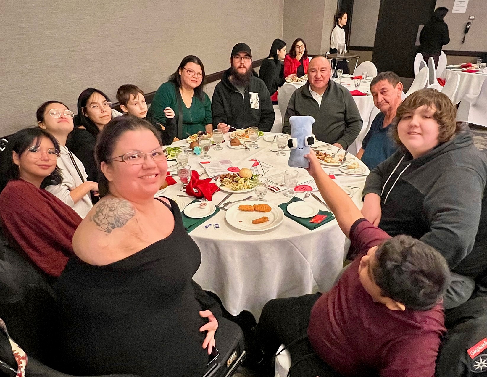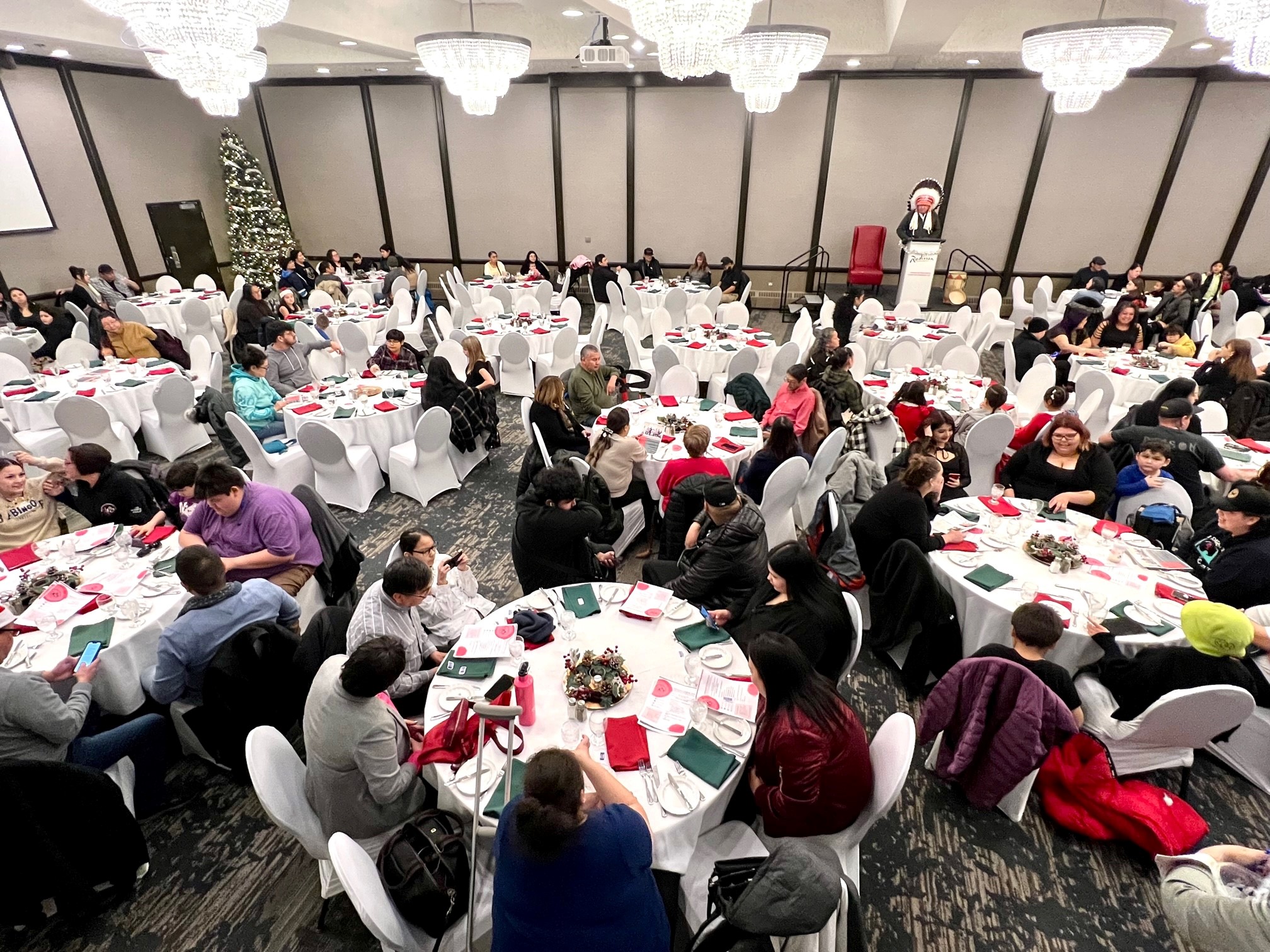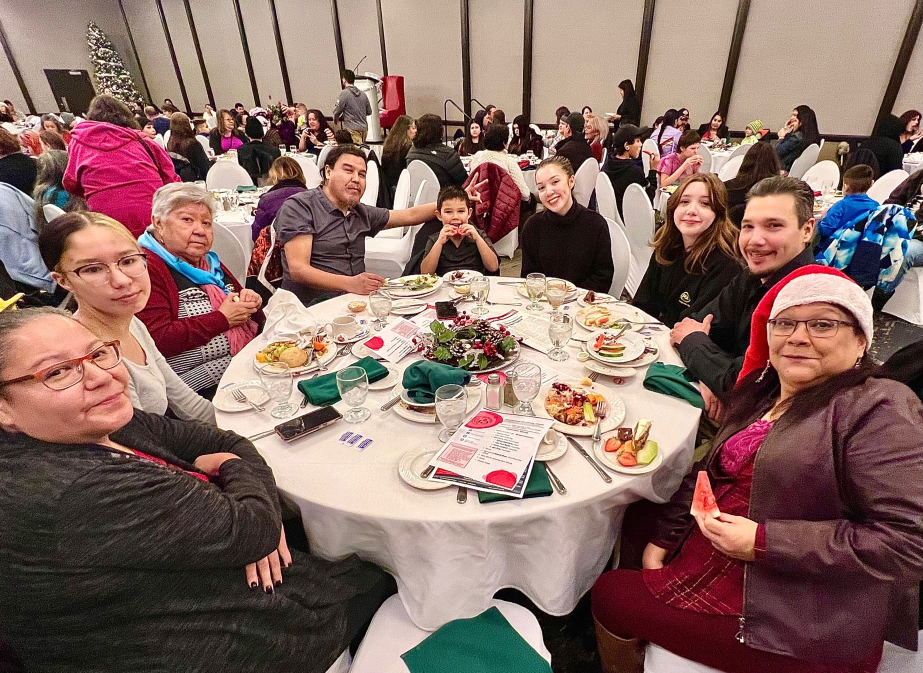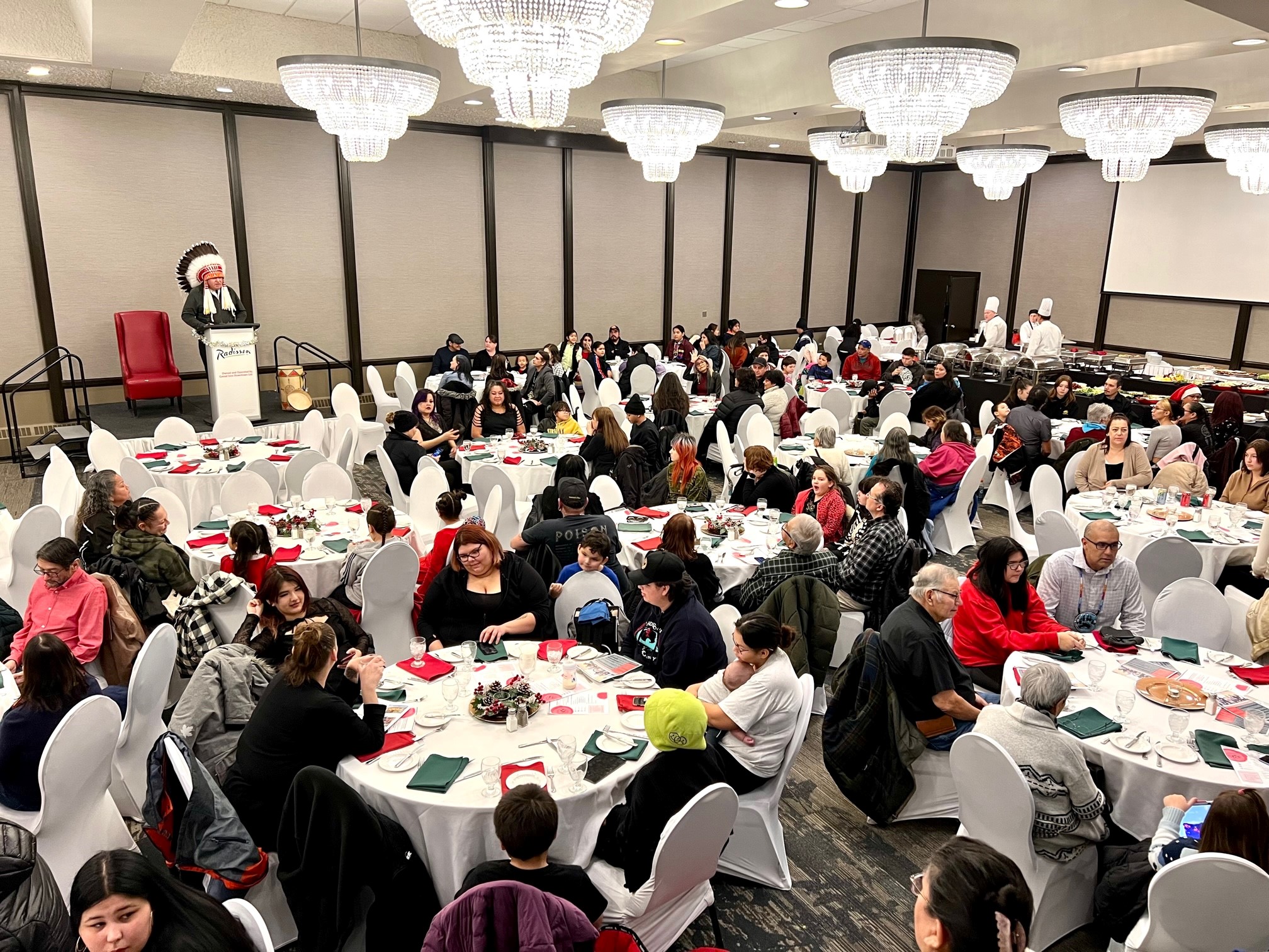 On Friday, December 9, 2022, a Christmas dinner was held at the Radisson Hotel in downtown Winnipeg for Opaskwayak band members living in the city and surrounding area.